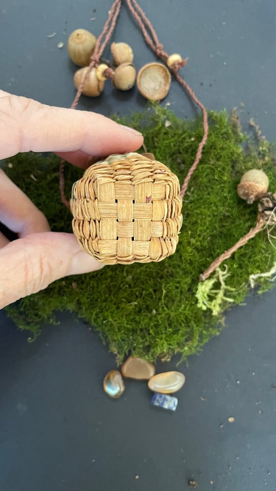 Tiny woven wearable pouch perfect for gathering and keeping treasures close to your heart. Woven from foraged wild grasses and leaves